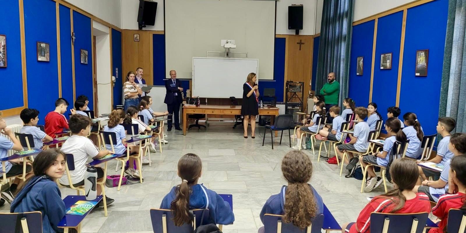 Au Collège Notre-Dame de Nazareth, j’ai eu l’immense joie d’échanger notamment avec les élèves de CM2 qui participent à l’édition 2024 du Parlement des enfants, initiative menée de concert par l’Assemblée nationale et le ministère de l’Education nationale et de la Jeunesse. Je suis particulièrement fière que des élèves représentant notre formidable réseau d’enseignement français à l’étranger aient ainsi à coeur de prendre part à ce type de concours, dont ils pourraient pourtant facilement se sentir éloignés. Le degré de conscience citoyenne et politique de ces jeunes est particulièrement avancé et cela est à l’image des projets impulsés par l’établissement. Depuis 10 ans déjà, en plus des délégués et des ambassadeurs anti-harcèlement, des élèves volontaires animent des groupes de travail sur des thèmes spécifiques qui vont de l’environnement à l’agriculture en passant par la médiation ou l’éveil sportif. Bravo et merci à la direction de l’établissement et toutes les équipes d’avoir permis cette rencontre.
